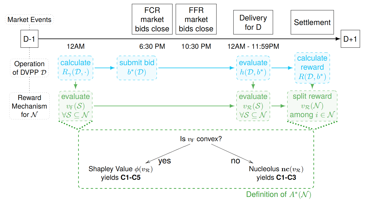 - Master's Thesis: "A Coalitional Stable and Fair Reward Allocation for Dynamic Virtual Power Plants" (full text) at the Automatic Control Laboratory. I achieved a 6.0 (the highest possible grade) for proposing a new allocation scheme and control design for distributed energy resources. During the thesis, we (Dr. Häberle, Dr. Bolognani, Prof. Dörfler, me) submitted a paper to the PowerUp 2026 Conference.